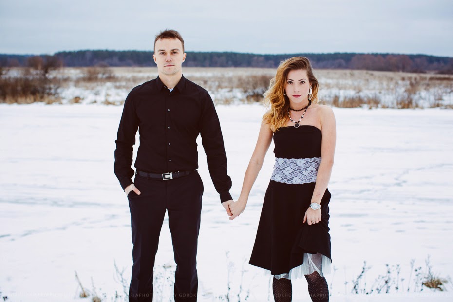 Мы думали, что нашей главной проблемой как всегда будет холод - ничего подобного! Самое смешное произошло уже после съемки. Я припарковалась прямо у поля, где проходила фотосесия. Чтобы была возможность проехать другим машинам я поставила машину впритык к шлакбауму. Погода была снежная - на дороге повсюду лежали кучи снега от снегоуборочных машин, а под снегом ехидно скрывался лед, которой в принципе все и решил. Я села в машину и... просто не могла стартовать! Мы оказались посреди поля совершенно одни без всякой возможности выехать на дорогу! То что ребята пытались мне помочь и толкали машину сделало только куже - мы снести ее в кювет мордой.