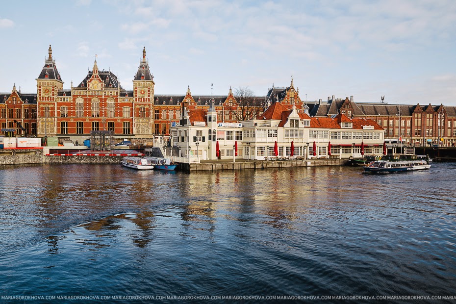 I put off the work on this post for quite a long time, now it's almost summer and we went to Amsterdam in January after New Year celebration. I was dreaming about this city for ages, but I don't know why... But it was worth it! It's great! I want to compare it with Saint Petersburg or Venice but I won't. It's special. The name of the city consists of Amstel (name of the river) and Dam. It used to be a small fishing town, now it's a capital of Netherlands. In summer there are crowds of tourists. We went here in not tourist time, it was so cold and windy but there were only few people in the streets so it was cool. Even the Sun didn't warm us, but it was much warmer in coffeeshops and restaurants. Amsterdam is really beautiful even in winter! cafes, little houses, tulips, chanels, bikes.... everything is so cute! I would have taken pictures for ages but not for the cold! We lived in a nice hotel in the city center Renaissance five minutes walk from the Central Station and Red Light District. Rooms in Renaissance are cozy and beautiful, there is a fireplace in reception area, free wi-fi, good restaurant and gym where I spent some time almost every day.